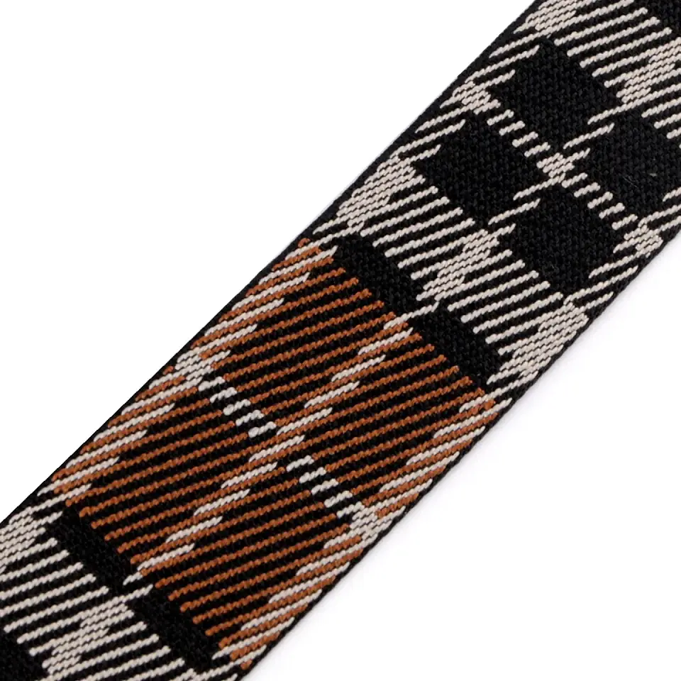 Markantes Gurtband mit grafischem Karomuster in Schwarz und Braun. Die Farbkombi wirkt ruhig und modern, das Muster bringt trotzdem Spannung ins Projekt. Ideal für Taschengurte, Rucksäcke, Shopper oder Crossbody-Bags. Auch als Hingucker an Jacken oder für Gürtel einsetzbar. Das Band liegt angenehm in der Hand, bleibt dabei formstabil und hält im Alltag zuverlässig stand.