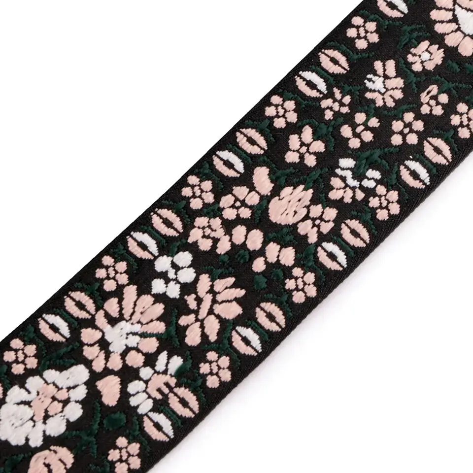 Dieses Gurtband fällt sofort auf. Die detailreiche Blumenstickerei auf schwarzem Hintergrund wirkt hochwertig und bringt einen verspielten, fast folkloristischen Look ins Nähprojekt. Perfekt für Taschengurte, Rucksäcke, Shopper oder als besonderes Detail an Jacken und Accessoires. Durch die Stickerei bekommt dein Projekt eine ganz eigene Note. Trotz der aufwendigen Optik bleibt das Band angenehm weich und stabil im Einsatz.