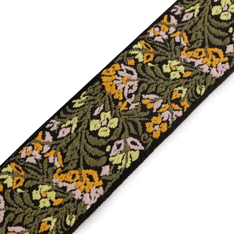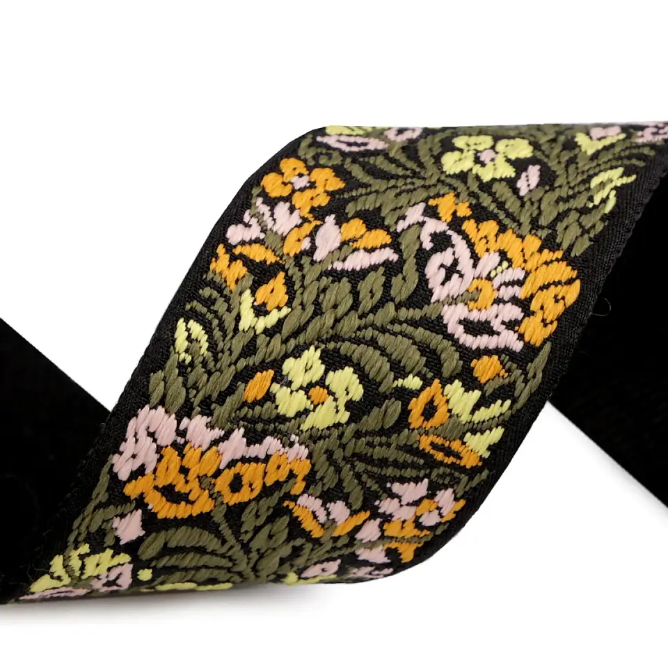 Dieses Gurtband fällt sofort auf. Die detailreiche Blumenstickerei auf schwarzem Hintergrund wirkt hochwertig und bringt einen verspielten, fast folkloristischen Look ins Nähprojekt. Perfekt für Taschengurte, Rucksäcke, Shopper oder als besonderes Detail an Jacken und Accessoires. Durch die Stickerei bekommt dein Projekt eine ganz eigene Note. Trotz der aufwendigen Optik bleibt das Band angenehm weich und stabil im Einsatz.