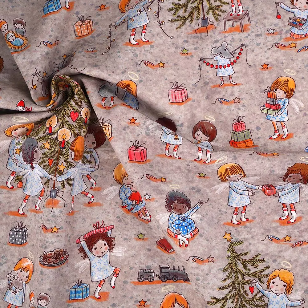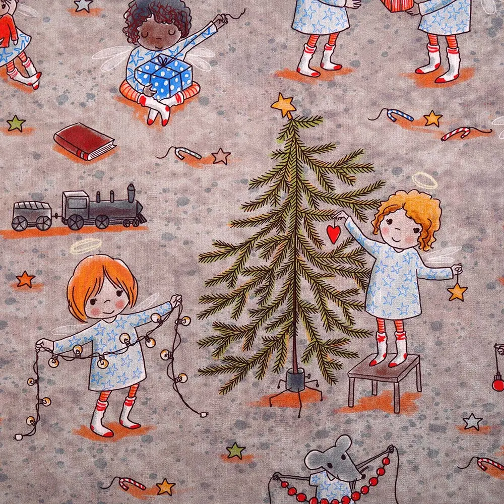 Produktinformationen "Bio Baumwolle Popeline Weihnachtsfest grau bunt von Susalabim und dem Stoffonkel"