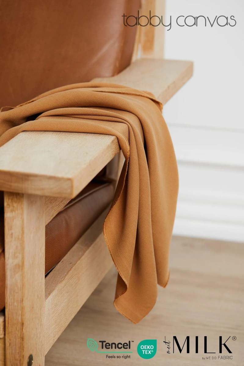 In der Farbe mustard bekommt der Tabby Canvas von meetMILK eine wunderbar warme, leuchtende Note. Die typische Canvas-Struktur sorgt für eine spannende Optik, während das reine TENCEL™ Lyocell für ein überraschend weiches, fließendes Gefühl sorgt.