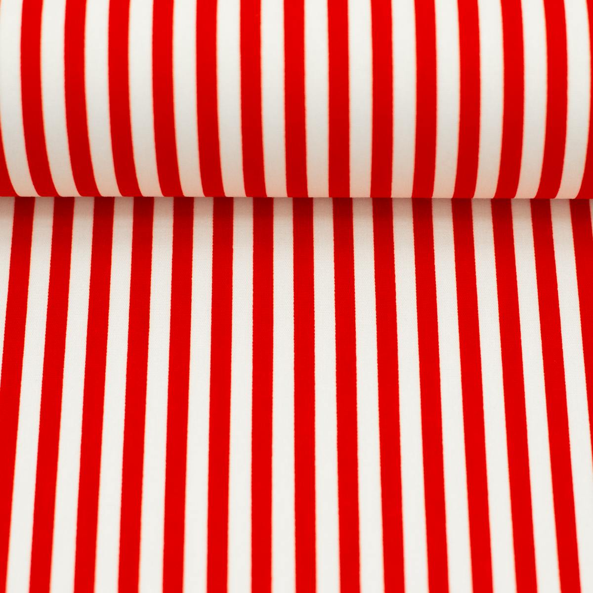 Gestreifter Baumwollstoff aus der Serie Rotenburg von Swafing - ein klares Streifendesign in Weiß und Rot. Durch die feine Leinwandbindung ist der Stoff angenehm leicht, gut zu verarbeiten und formstabil. Ideal für alle, die es klassisch, frisch und kombinierfreudig mögen. Perfekt geeignet für Kleidung wie Blusen, Röcke oder Kinderkleidung sowie für Accessoires, Taschenfutter, Kissen, Tischwäsche oder kreative Deko-Projekte.