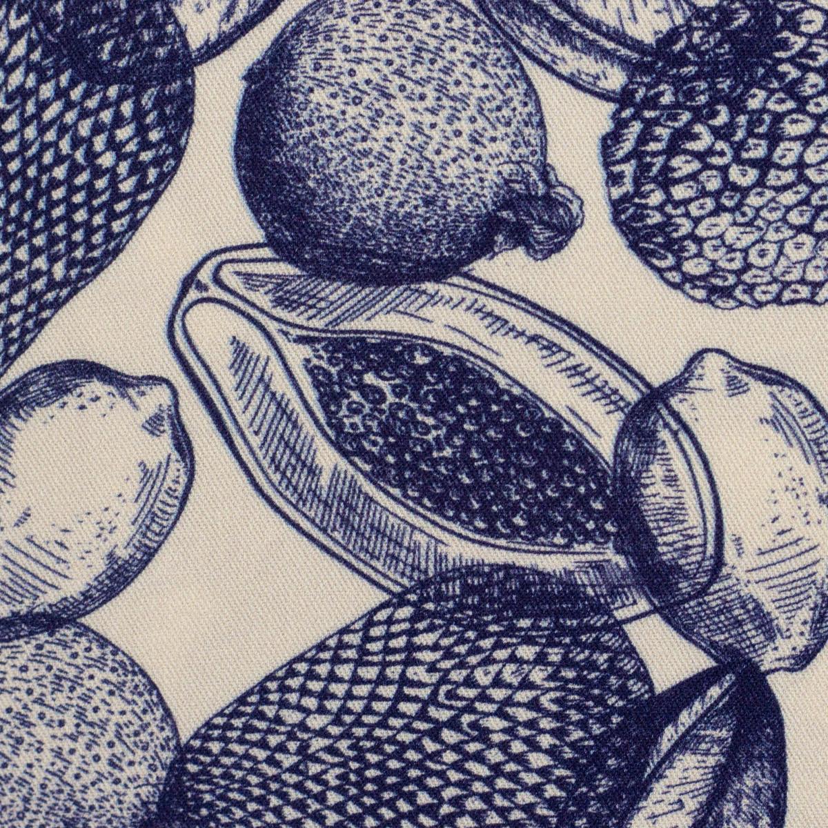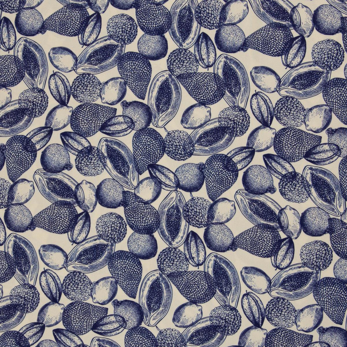 Detailreiche Fruchtillustrationen in klassischem Blau auf naturfarbenem Hintergrund. Das Muster erinnert an feine botanische Zeichnungen und wirkt gleichzeitig verspielt und elegant. Die leichte Viskose fällt weich und fließend. Der Stoff trägt sich angenehm kühl auf der Haut und eignet sich besonders gut für luftige Kleidung an warmen Tagen. Ideal für Kleider, Blusen, Röcke oder lockere Tops. Auch Jumpsuits, weite Hosen oder sommerliche Zweiteiler lassen sich daraus wunderbar nähen. Das lebendige Muster kommt besonders gut bei einfachen Schnitten zur Geltung.