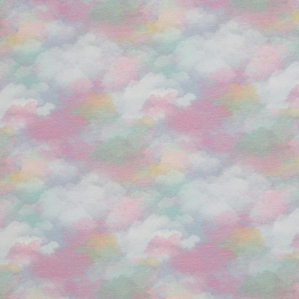 Dieser French Terry zeigt sich in einer sanften Mischung aus Rosa, Mint, Hellblau, Flieder und soften Gelbtönen. Das wolkige Design wirkt leicht und freundlich und passt wunderbar zu frischen Frühlings- und Sommernähprojekten.
