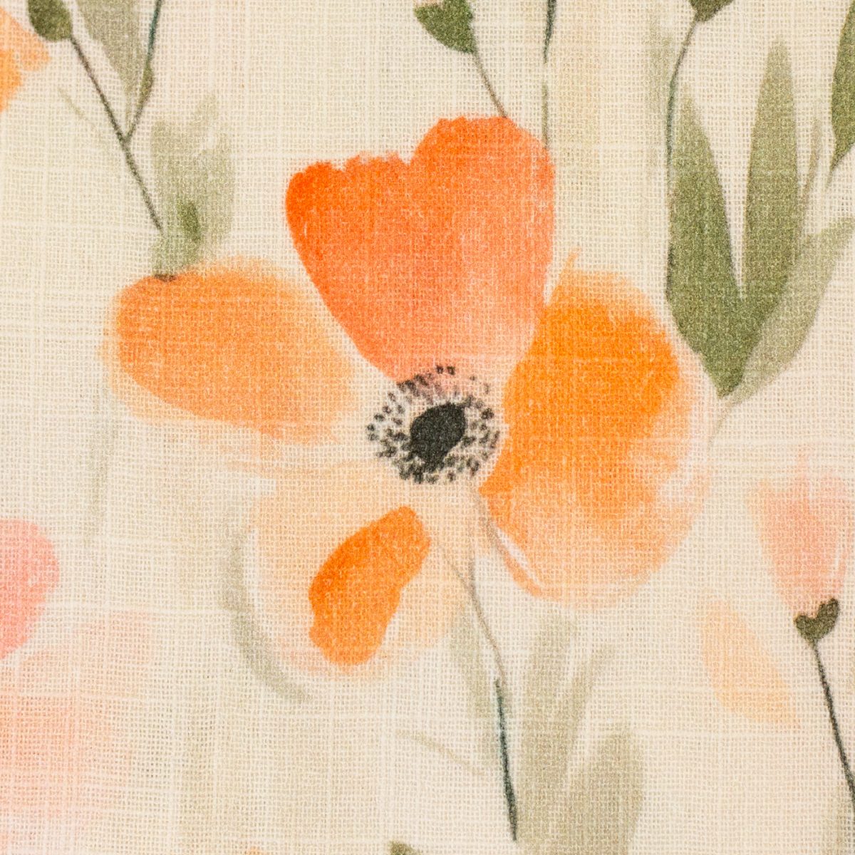 Zarte Blüten in Orange und Rosé, dazu feine Blätter auf hellem Grund. Der Stoff wirkt leicht, freundlich und natürlich – perfekt für frische Lieblingsstücke. Dieser Double Slub Musselin hat eine schöne, textile Oberfläche, crinkelt aber nicht wie klassischer Musselin. Er bleibt glatt, fällt weich und trägt sich angenehm. Ideal für Tücher, Schals, Blusen, Kleider, Tuniken, Röcke, Babydecken oder leichte Sommeraccessoires.