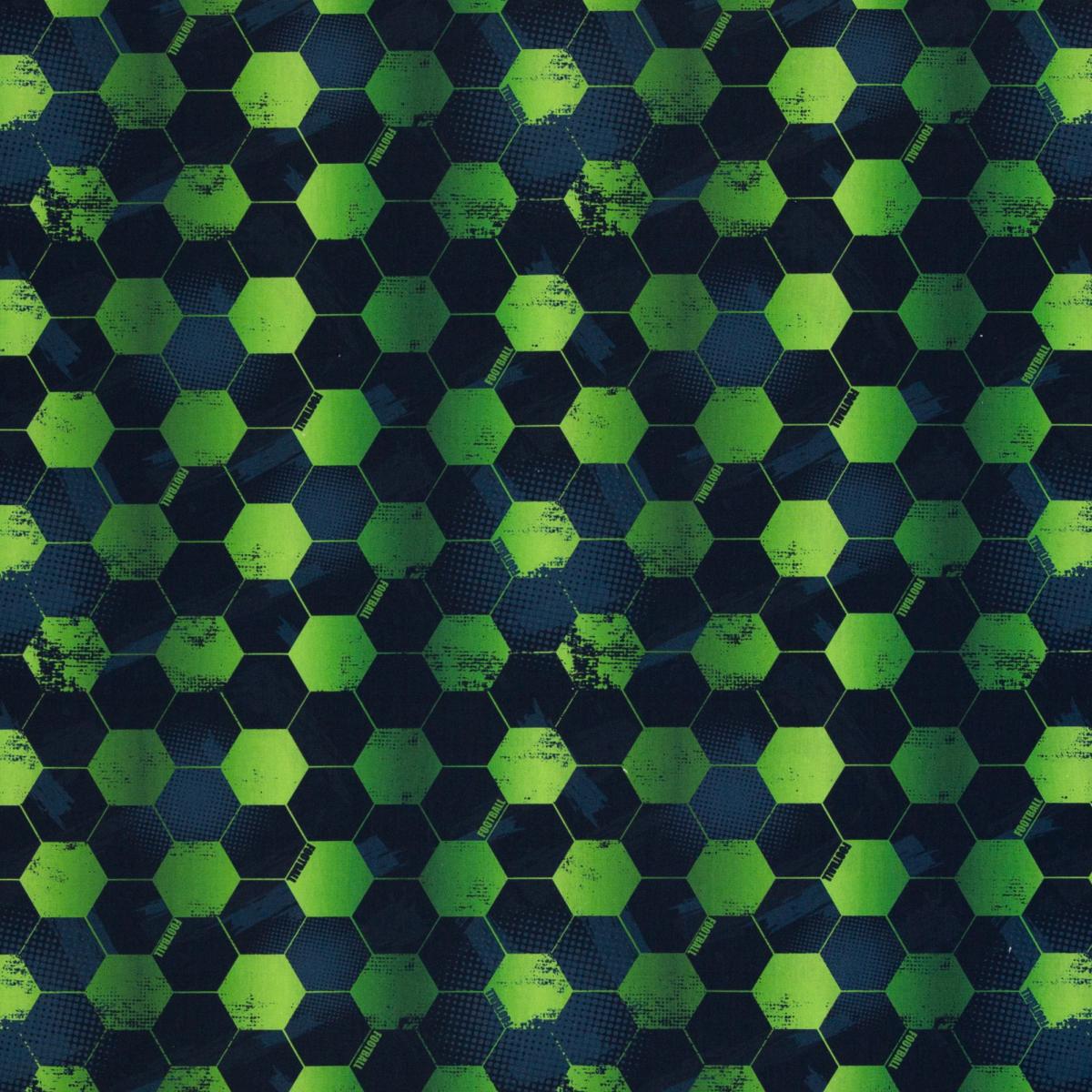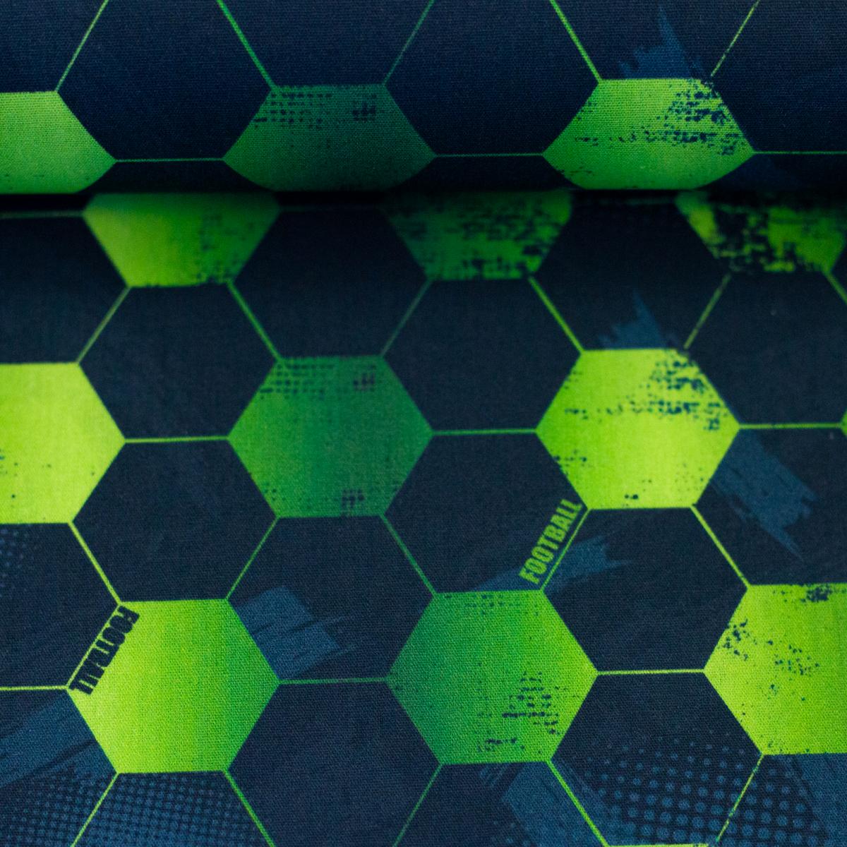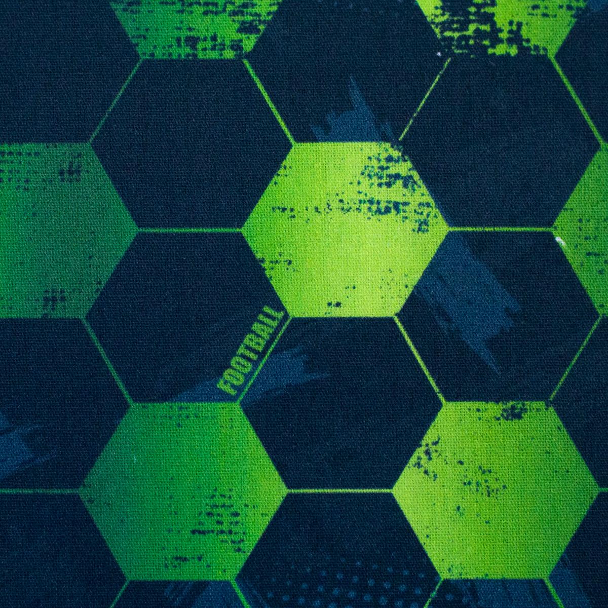 Dieser Baumwollstoff von Swafing bringt Fußballfeeling ins Nähzimmer – aber ohne klassisches Ballmotiv. Das grafische Hexagon-Muster in kräftigem Grün, Anthrazit und Schwarz wirkt sportlich, modern und cool. Der Stoff eignet sich ideal für Turnbeutel, Sportbeutel, Kissen, Schultüten, Utensilos, Tischdeko, kleine Accessoires oder Geschenkideen für Fußballfans. Auch für Kinderzimmerdeko oder Fan-Projekte ist er eine starke Wahl.