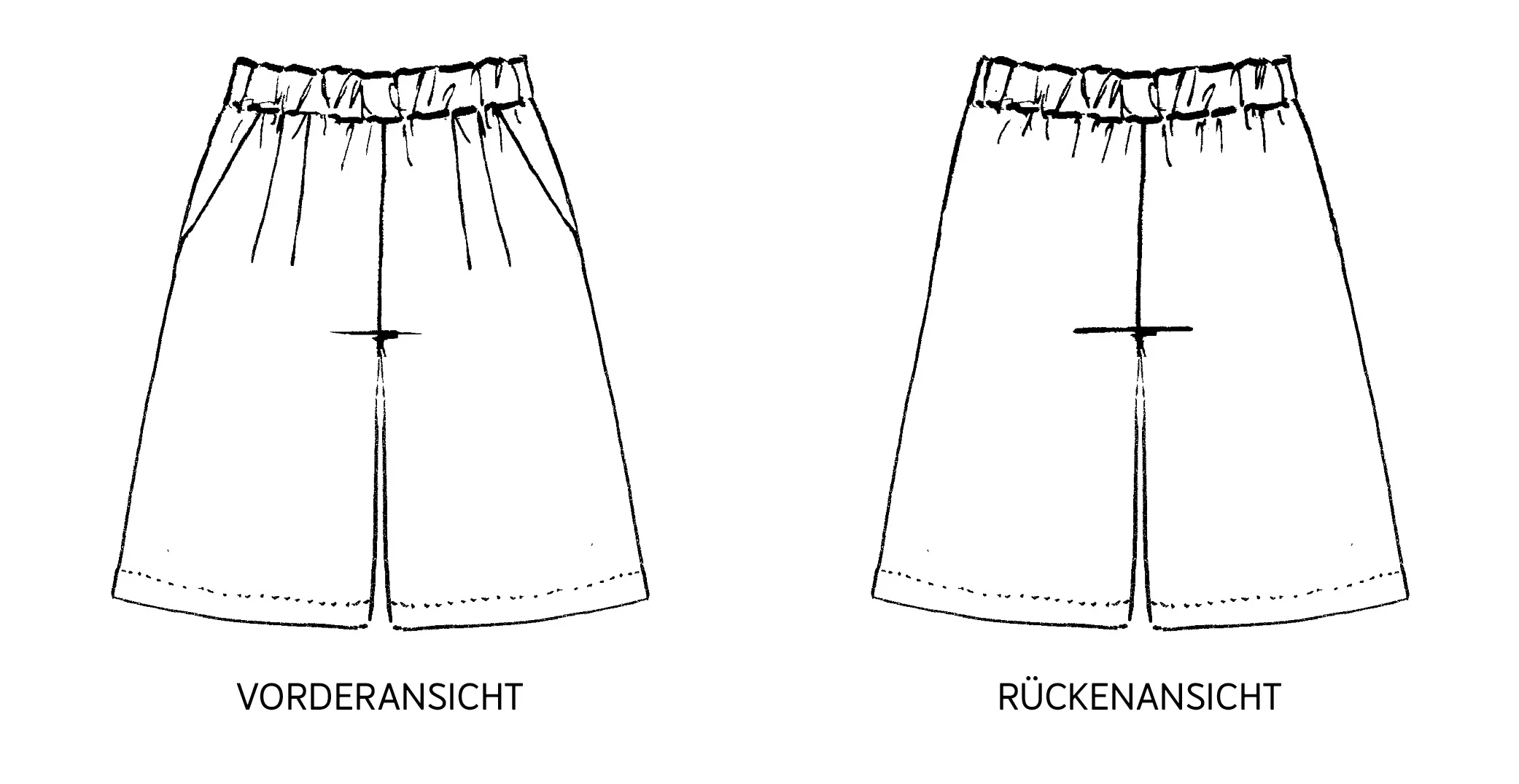 - Materialempfehlung: weich fallende Hosenstoffe aus Webware. Zusätzlich wird ein 3,5 bis 4 cm breites Taillengummi für den Bund benötigt.