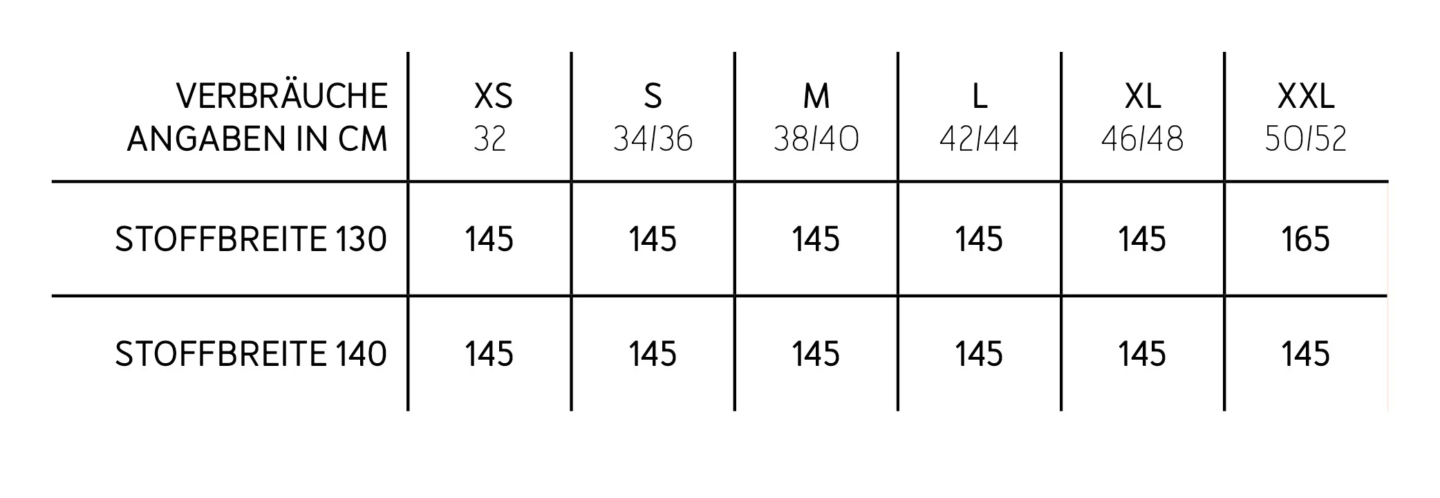 - 5 Doppelgrößen - XS (146/152) bis XXL (50/52)