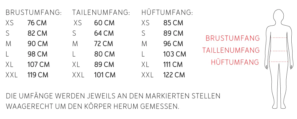 • 5 Doppelgrößen - XS (146/152) bis XXL (50/52)