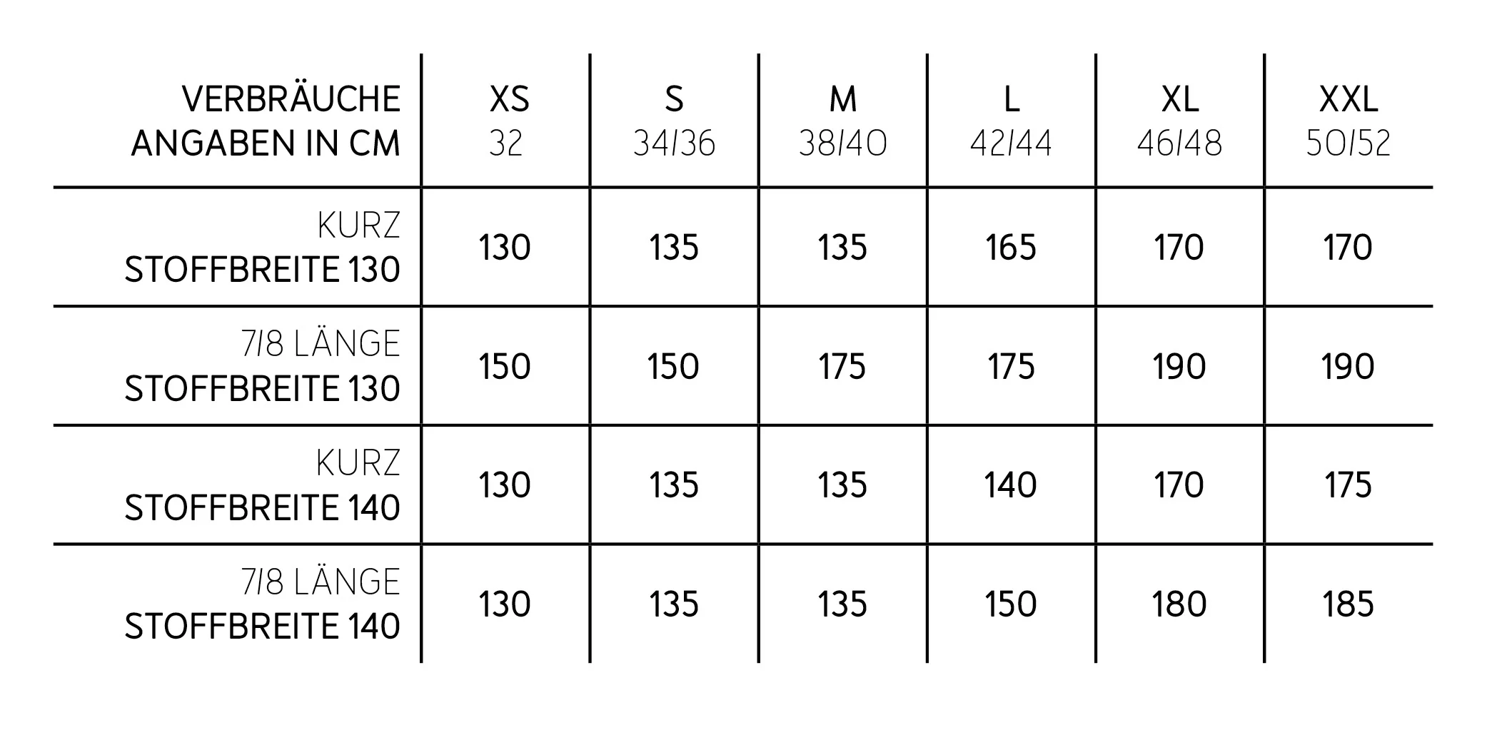 - 6 Doppelgrößen XS (32) bis XXL (50/52)