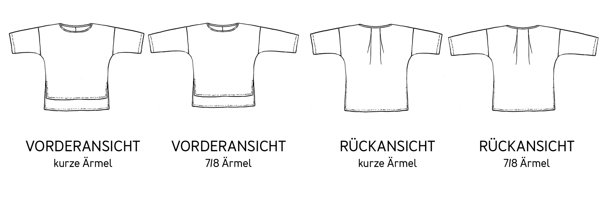 - Materialempfehlung: Es eignet sich locker fallende Webware z. B. dünner Leinen, Voile, Double Gauze oder leichte Baumwolle.