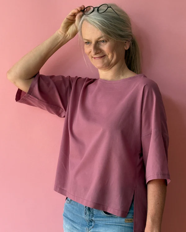 Locker, lässig, unkompliziert – das ist FRAU MAKI. Diese Bluse bringt alles mit, was ein entspanntes Teil für jeden Tag braucht: einen lockeren Schnitt, einen charmanten Rundhalsausschnitt (sauber eingefasst mit Schrägband), weite Ärmel in zwei Varianten (3/4 oder lang – du entscheidest!) und ein verlängertes Rückenteil mit hübscher Quetschfalte. Die seitlichen Schlitze geben zusätzlich Bewegungsfreiheit und machen FRAU MAKI auch in Sachen Stil ganz groß. Das Beste: Die Bluse kommt ganz ohne Verschluss aus – einfach reinschlüpfen und wohlfühlen - FRAU MAKI sitzt immer lässig und sieht dabei einfach gut aus.