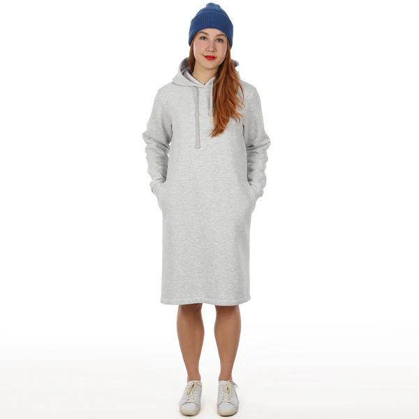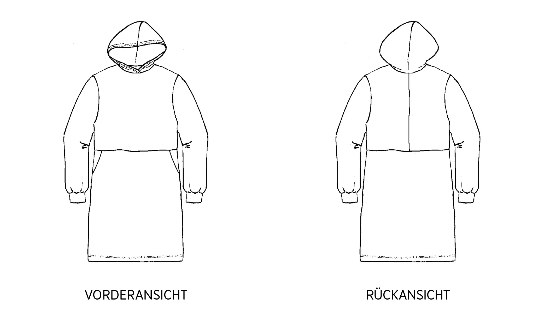 FRAU SADIE ist ein sportlich legeres Kleid im Hoodielook. Die Schultern sind leicht überschnitten, die Ärmel schließen mit Bündchen ab. Die großzügige Kapuze wird mit einer Kordel reguliert. Das obere Rückenteil wird mit einer Naht in der hinteren Mitte gearbeitet. Das Rockteil ist knielang und mit Eingriffstaschen versehen. FRAU SADIE ist ein Freitzeitkleid für viele Gelegenheiten, bei dem die Gemütlichkeit nicht zu kurz kommt.