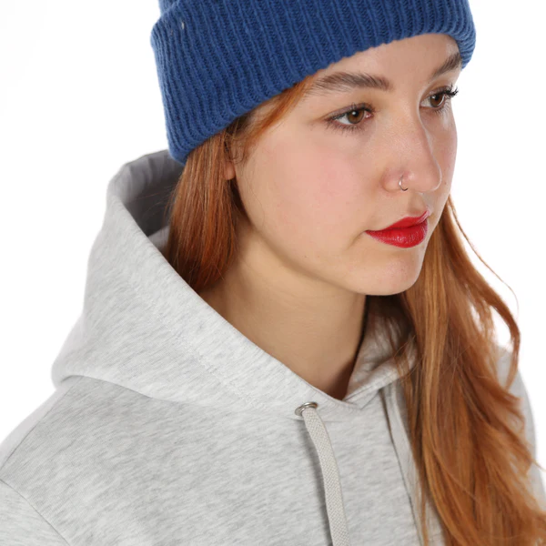 - Materialempfehlung: Materialempfehlung: elastische Stoffe mit etwas Volumen wie Sweat oder Heavysweat. Zusätzlich werden zwei Ösen (Größe passend zum Kordelumfang) und Vlieseline zum Unterlegen der Ösen benötigt.