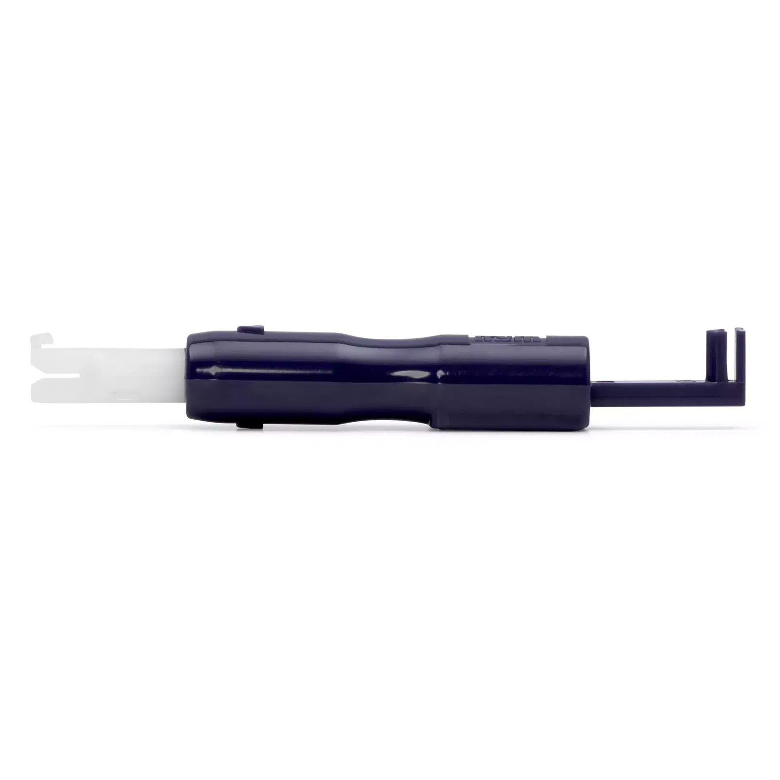 Es gibt viele kleine Dinge, die das Nähen enorm erleichtern können. Dazu zählt auch diese praktische Einfädelhilfe für die Nähmaschine mit ihren drei Funktionen: einem Nadelhalter, der Einfädelhilfe und einem praktischen Magneten. Die Einfädelhilfe mit ihrem ausgeklügelten Mechanismus unterstützt das sonst so mühsame Einfädeln des Fadens in die Nähmaschinennadel. In einfachen Schritten kommt man hier schnell zum Erfolg, denn ein feiner Metalldorn schiebt über eine Federwirkung den Faden ganz leicht durch das filigrane Öhr. Mittels Haken seitlich vorne an der Fadenführung zieht man zum Schluss den Faden komplett durch das Öhr: Schon kann der Nähspaß beginnen. Darüber hinaus unterstützt der Einfädler auch beim Einsetzen der Nadel in die Nähmaschine mit Hilfe des Nadelhalters. Einfach die Nadel mit der Spitze nach unten und Kolben nach oben in den Halter setzen und bequem an der vorgesehenen Stelle in für die Nähmaschine einführen. Ein integrierter Magnet unterstützt dabei z.B. das Greifen der Nadel vom Tisch. Darüber hinaus begeistert die ungemein praktische Einfädelhilfe für die Nähmaschine durch ihre pflaumenblaue Farbgebung und ihre robuste Ausführung aus hochwertigem Kunststoff.