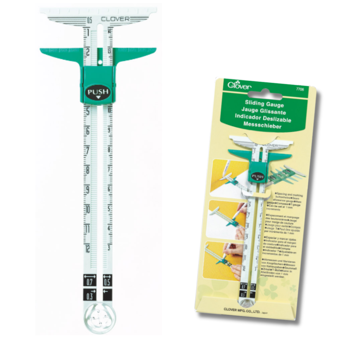 Weiterführende Links zu "Clover Messschieber für Nahtzugaben & Markierungen + Zirkel Funktion"
