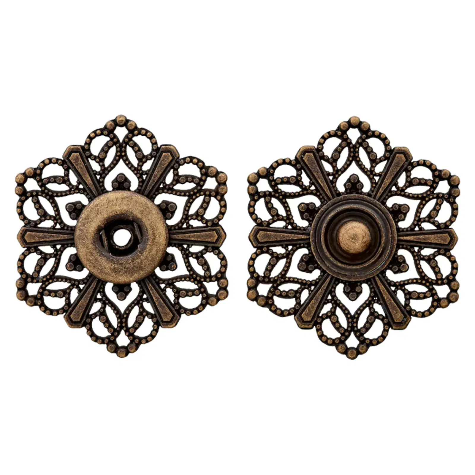Dieser große Annäh-Druckknopf aus Metall in edlem altmessing ist nicht nur praktisch, sondern auch ein echter Hingucker! Mit seinem filigranen, dekorativen Muster eignet er sich perfekt für Jacken, Mäntel, Westen, Taschen oder selbstgenähte Accessoires. Durch den stabilen Verschluss hält er zuverlässig zusammen, während die edle Optik deinem Projekt das gewisse Extra verleiht.