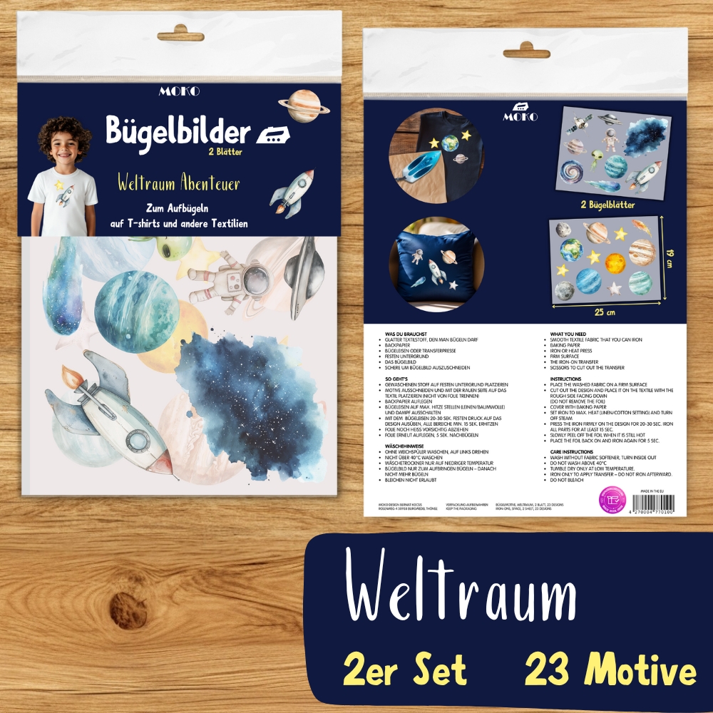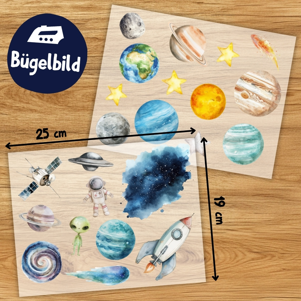 Bügelbilder Set Weltraum Abenteuer – 23 galaktische Motive (2 Bögen)