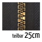 Reißverschluss Profil 5mm schwarz gold teilbar 25cm lang für Jacken und Westen