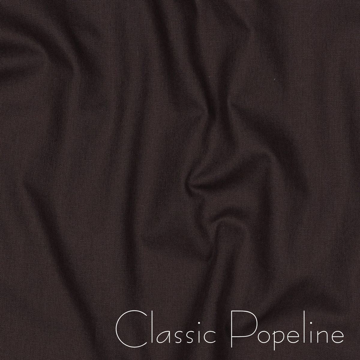 Dieser Baumwollstoff in dunkelbraun  ist ein zeitloser Klassiker und ein echtes Basic im Stoffregal. Die glatte Oberfläche, der feine Griff und das leichte Gewicht machen diesen Stoff besonders angenehm zu tragen und einfach zu verarbeiten. Baumwollpopeline wird auch als Cotton Poplin bezeichnet und ist für seine dichte Webart und Formstabilität bekannt. Ideal für Blusen, Hemden, Kleider, Röcke, Kinderkleidung, Pyjamas, Taschenfutter, Patchwork sowie leichte Dekoprojekte wie Kissenhüllen oder Tischläufer.