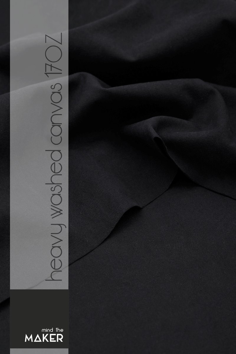 Mind the MAKER 17 Oz Heavy Canvas in schwarz – dein perfekter Taschen und Jacken Canvas. Richtig schwer, robust und grob gewebt. Der schwarze Baumwollstoff ist ein echter Workers-Canvas. Tolle Haptik, leicht verwaschen, einfach ein cooler Stoff. Ganz besonders schön wirkt die Used-Waschung, die jedes Teil zu einem einzigartigen Stück macht. Der Stoff ist nicht dehnbar und eignet sich hervorragend für Taschen, Seesäcke, feste Jacken, Accessoires, Deko und vieles mehr.