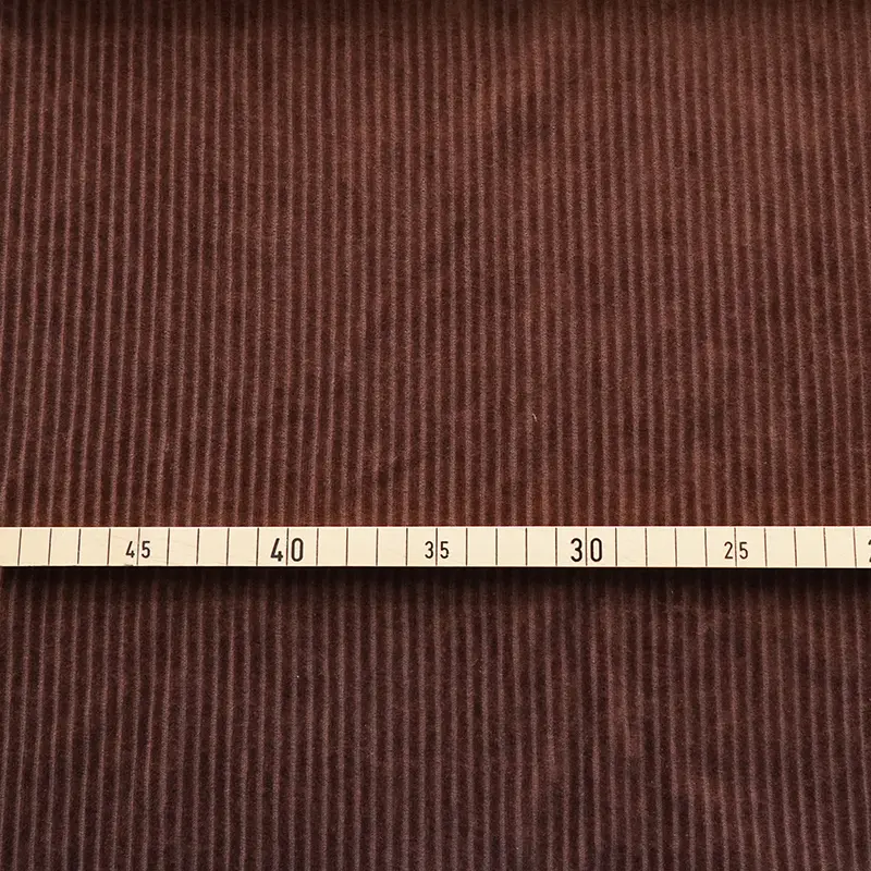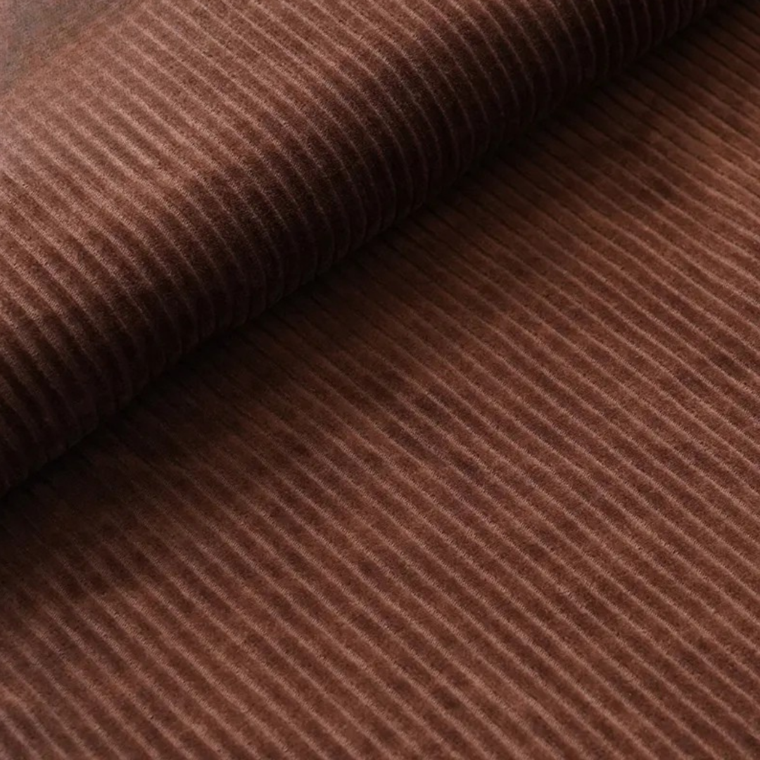 Bio-Nicki schoko in Stoffonkel Qualität aus 100% Baumwolle. Durch die Strickweise ist der Nicky leicht dehnbar und somit sehr bequem zu tragen. Der Nickyvelour bildet etwa 4mm breite Rippen, so dass eine Cordoptik entsteht. Extrem cool für beueme Hosen, Hoodies oder kuschlige Jacken. Aber auch süße Overalls, Decken, Kissen, Kuscheltiere, Schnuffeltücher, Deko oder hübsche Accessoires lassen sich daraus zaubern.