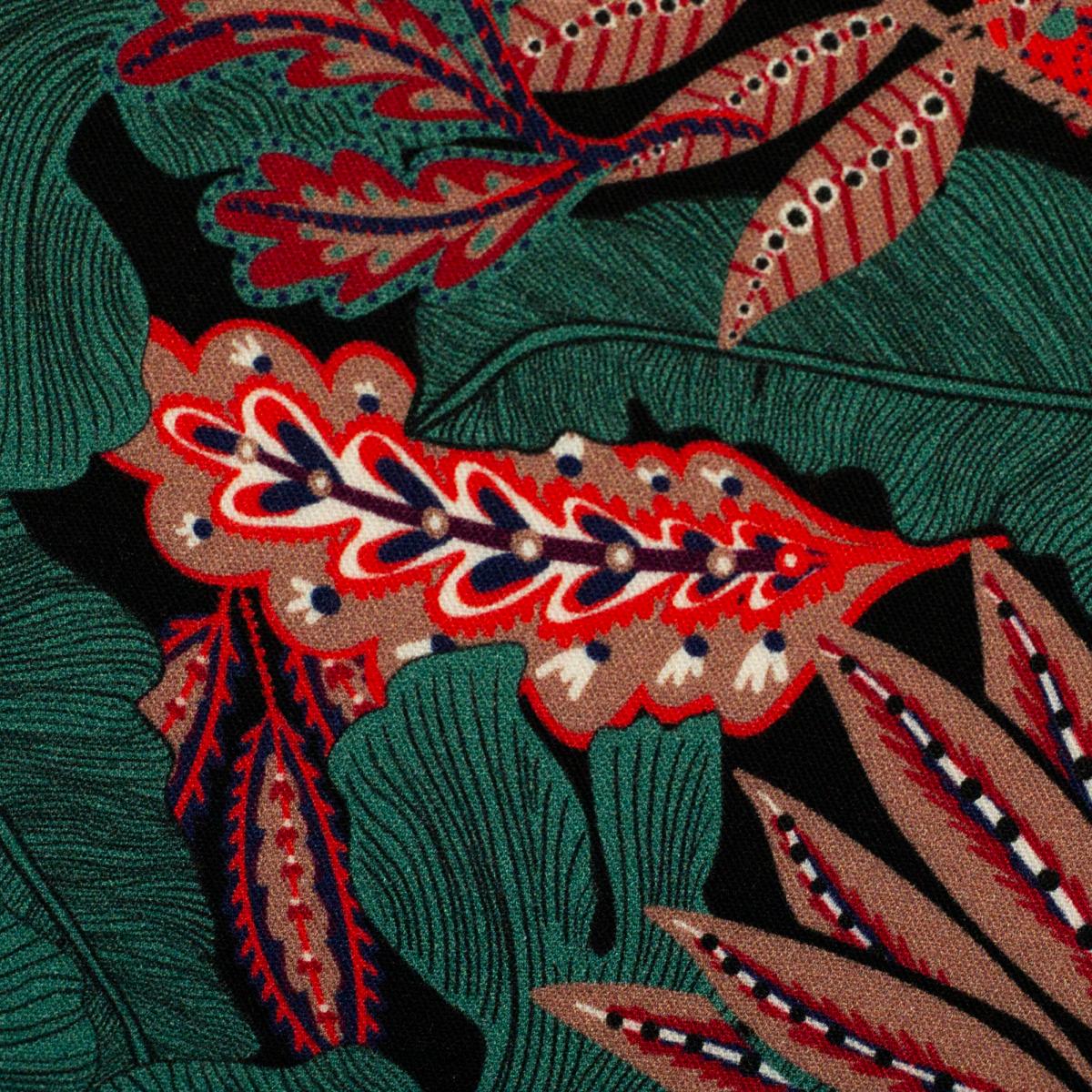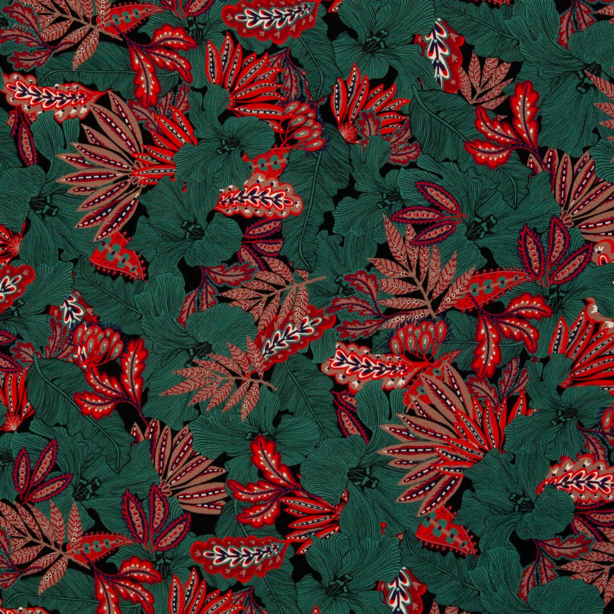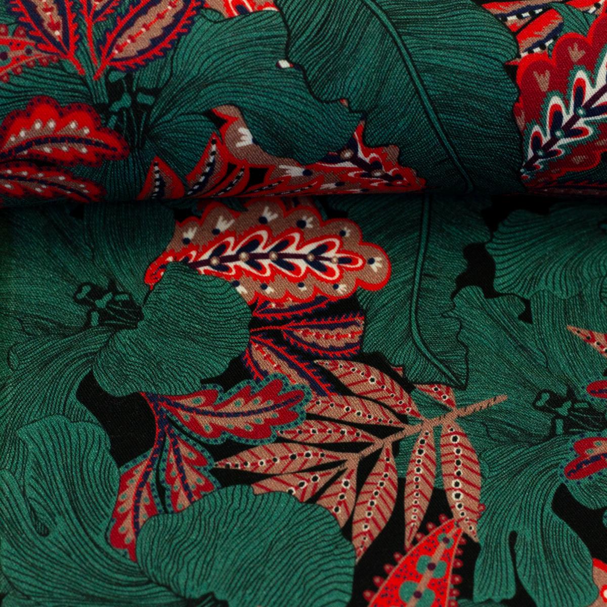 Die Viskose aus der Serie Indian Summer von Bienvenido Colorido für Swafing bringt den Zauber eines spätsommerlichen Blätterwaldes direkt auf deine Nähmaschine. Mit ihrem lebendigen Muster in Rot-, Braun- und Grüntönen ist sie ein echter Hingucker und verleiht jedem Outfit einen besonderen Look.