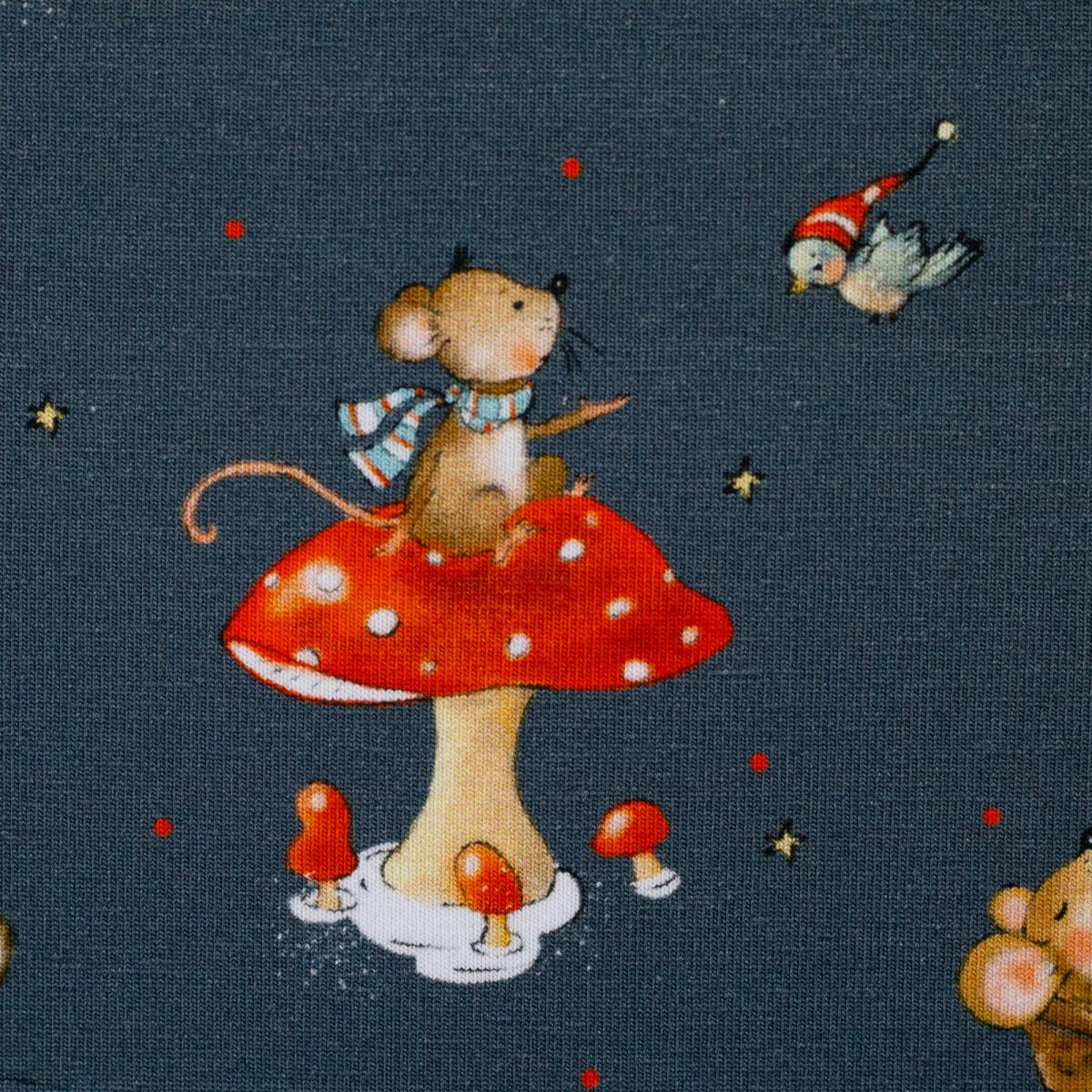 Jersey Weihnachten Maus Fliegenpilz dunkelblau - Baumwolljersey Serhie Lathi von Swafing