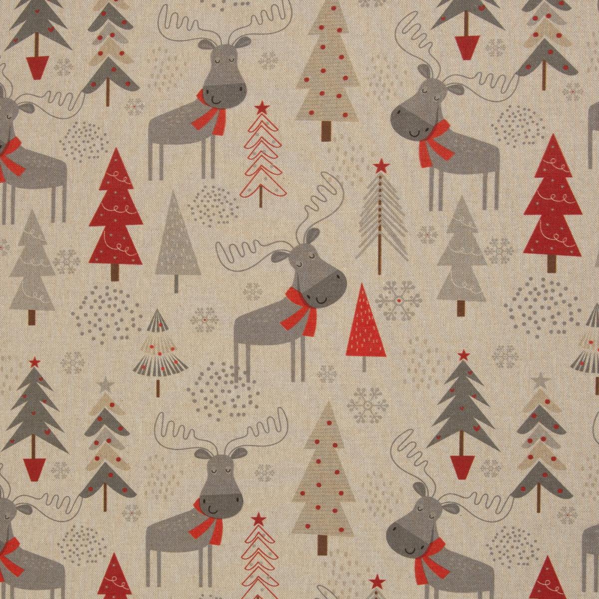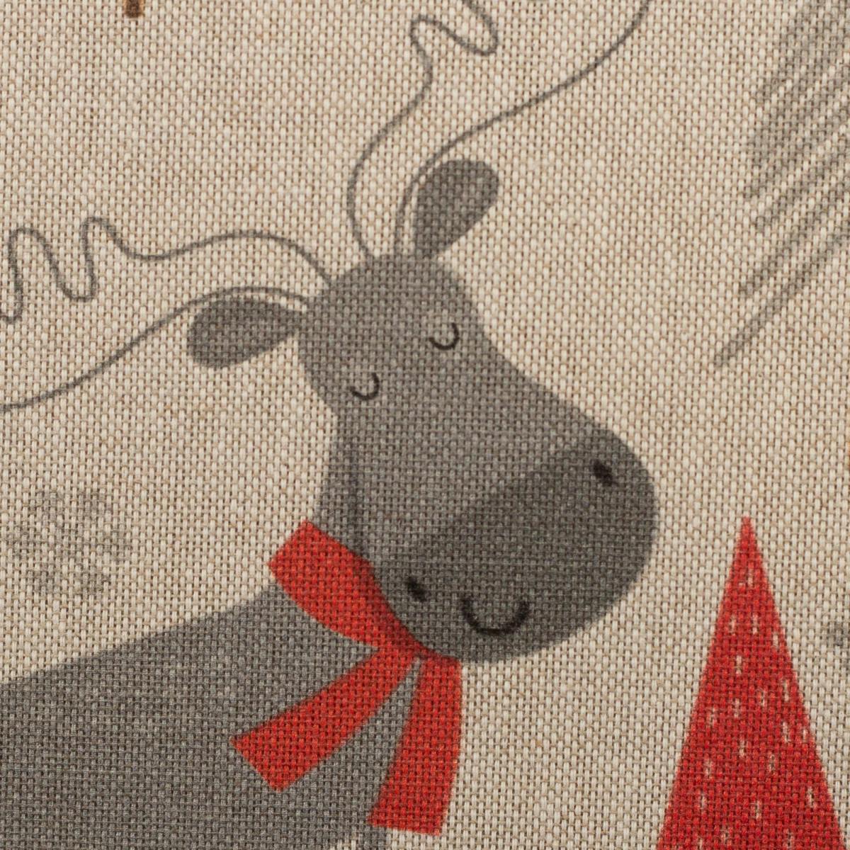 Mit diesem charmanten Baumwollstoff aus der Christmas-Serie von Swafing zieht sofort festliche Stimmung ein! Fröhliche Elche mit Schal, rote und graue Tannenbäume sowie feine Schneeflocken machen den Stoff zum idealen Begleiter für Adventszeit und Weihnachten. Nähe daraus Tischsets, Kissen, Geschenkbeutel, Schürzen oder kleine Deko-Projekte – perfekt für ein stimmungsvolles Zuhause!