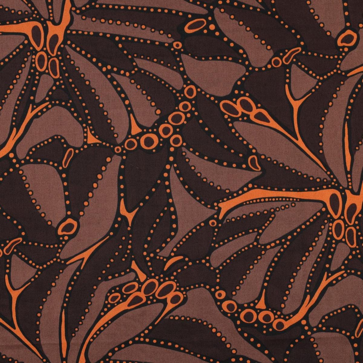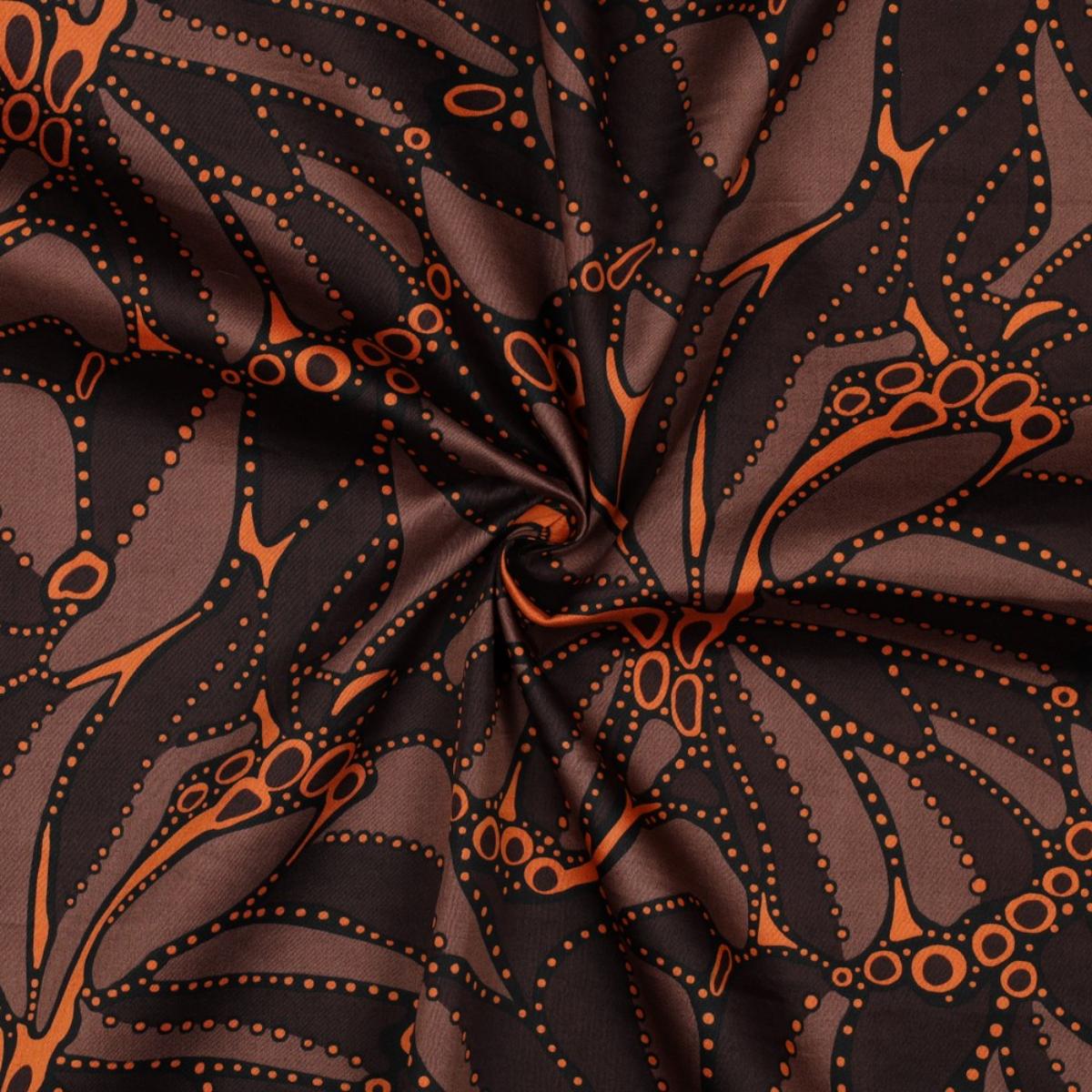 Cotton Satin mit großem abstraktem Muster in braun oragne aus feinster Baumwolle