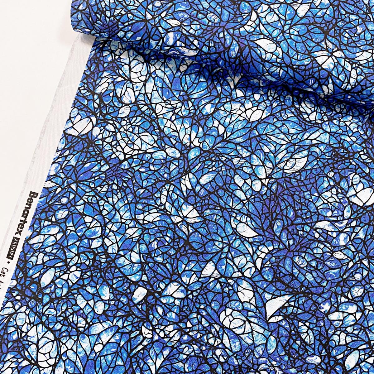 Mit der Serie Cat Artistry von Peggy Collins für Benartex zieht ein künstlerisches Highlight in dein Nähzimmer ein! Der Baumwollstoff begeistert durch sein lebendiges, mosaikartiges Muster in Blau- und Weißtönen, das an moderne Glasmalerei erinnert.