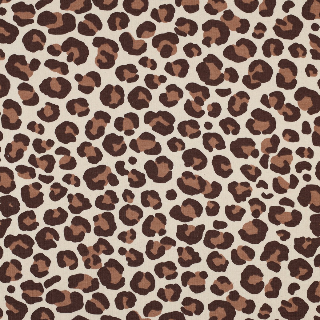 Unser French Terry Leo Love in Braun kombiniert kuschelweiche Qualität mit einem zeitlosen Animalprint. Der Stoff ist angenehm elastisch, formstabil und ideal für gemütliche Sweatshirts, Kleider oder Beanies. Der warme Braunton auf cremigem Hintergrund passt wunderbar zu Naturtönen, Cognac oder Schwarz – und sorgt für einen edel-lässigen Look.