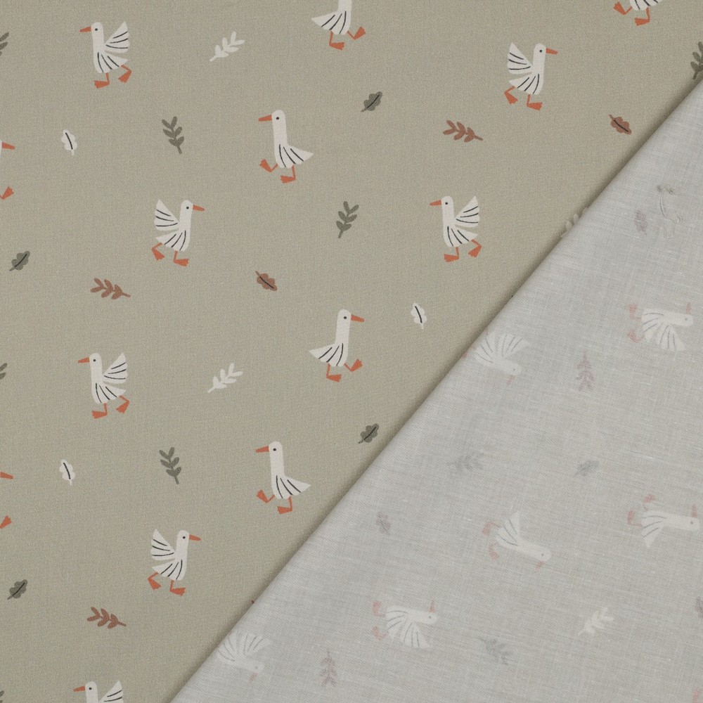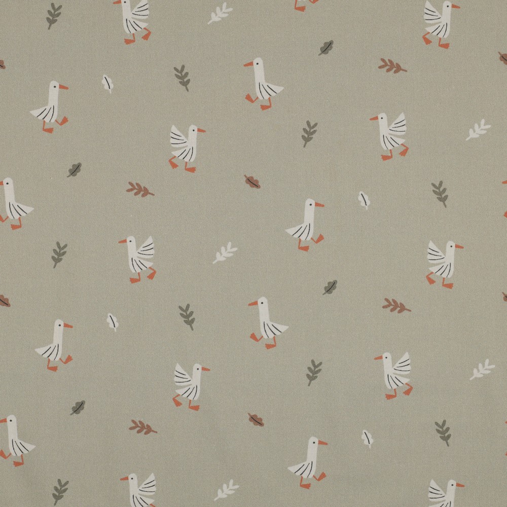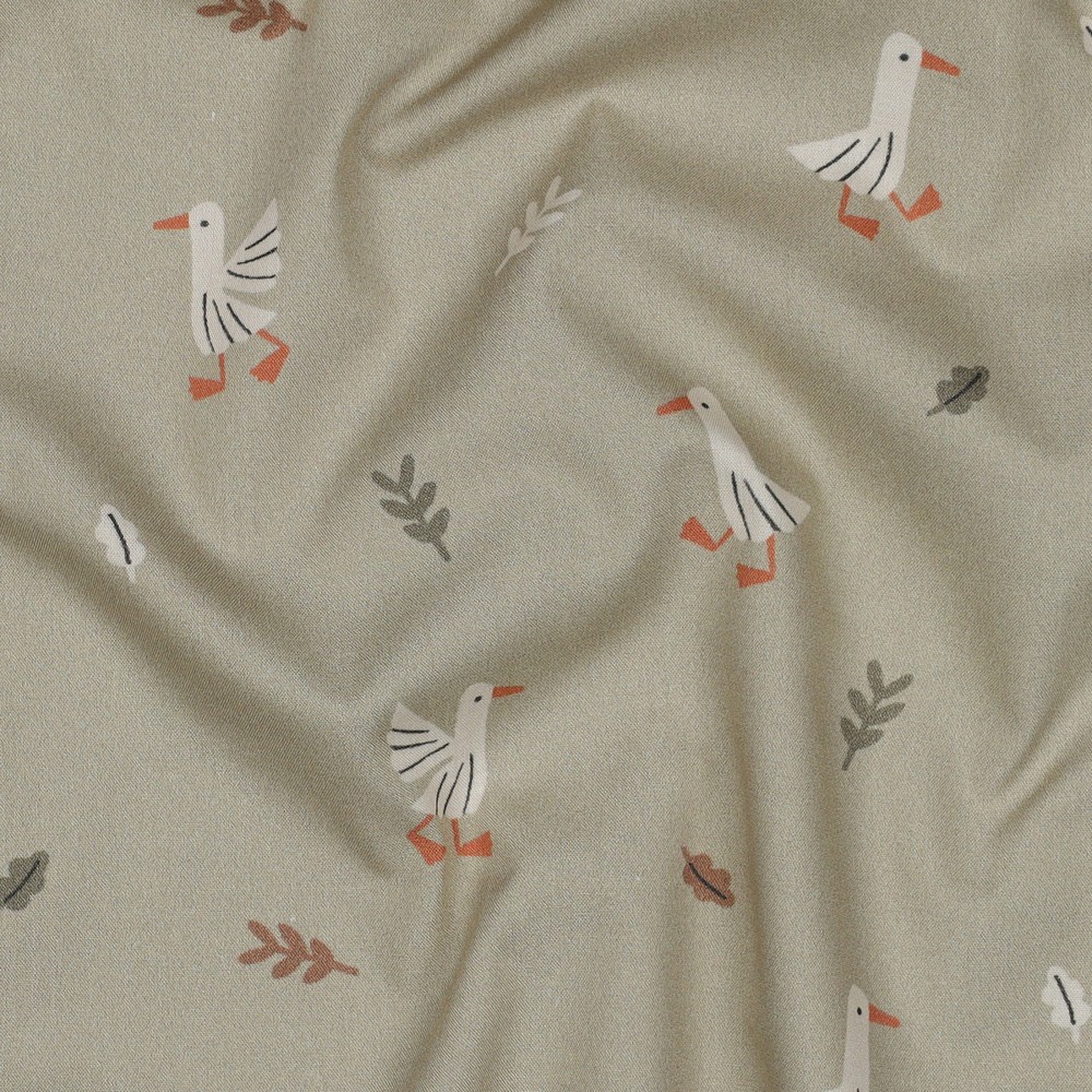 Fine Poplin aus 100 % Baumwolle mit Farm-Animals-Design auf einem sanften, warmen Beigeton. Kleine Gänse, Blätter und zarte Naturdetails wirken harmonisch und zeitlos – perfekt für Baby- und Kinderprojekte mit natürlicher Ausstrahlung. Mit 110 g/m² ist der Stoff angenehm leicht, fein gewebt und weich im Griff. Ideal für Hemden, Blusen, Kleider, Latzhosen, Pumphosen, Babydecken oder Accessoires. Die Poplin-Qualität lässt sich präzise verarbeiten und trägt sich angenehm auf empfindlicher Haut.