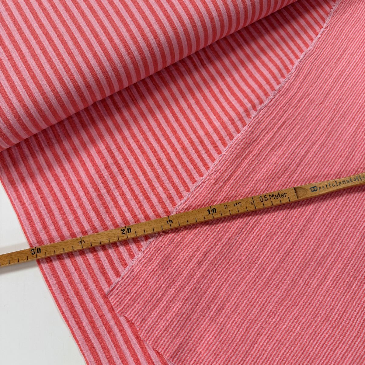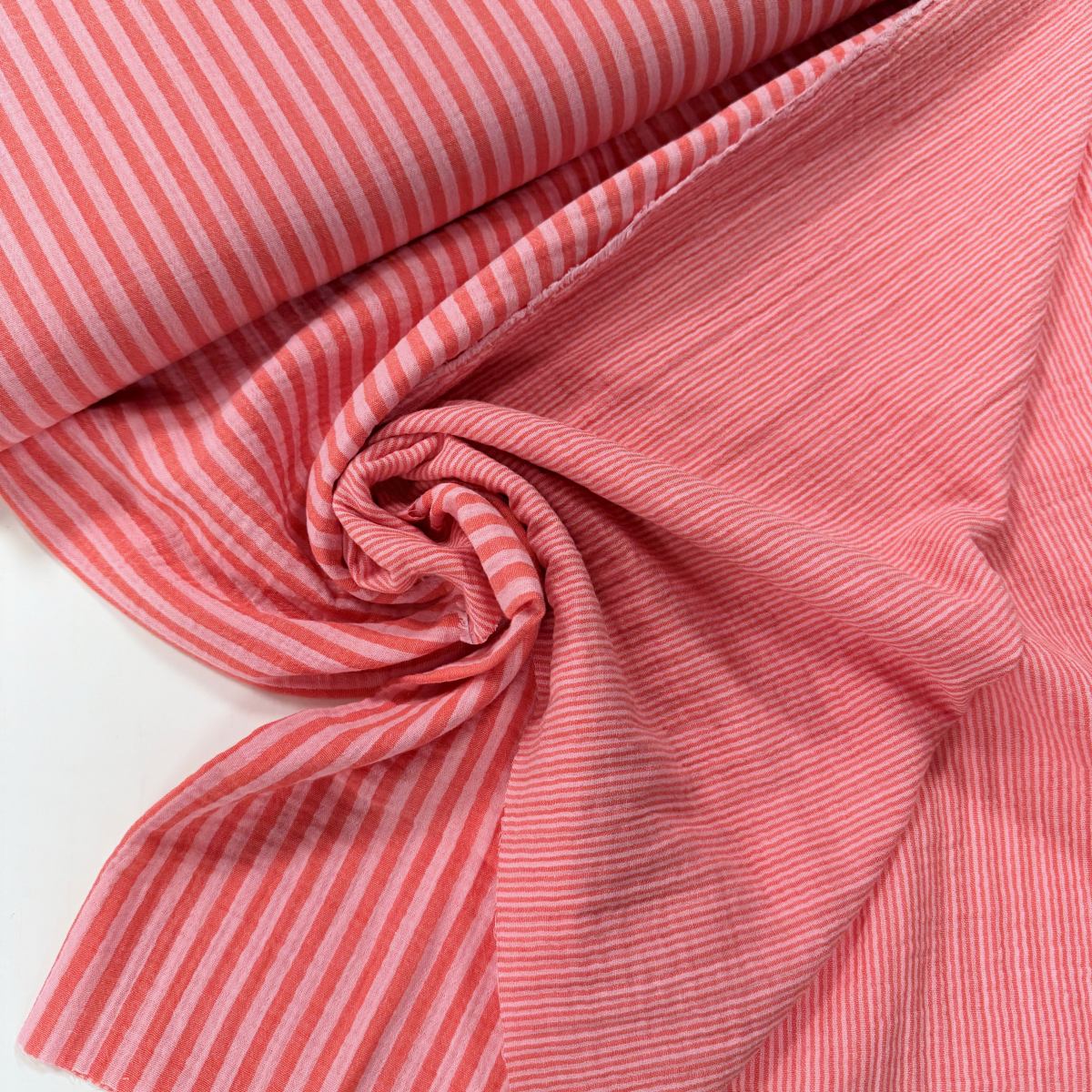 Doubleface Musselin Korallenblüte Rosa gestreift