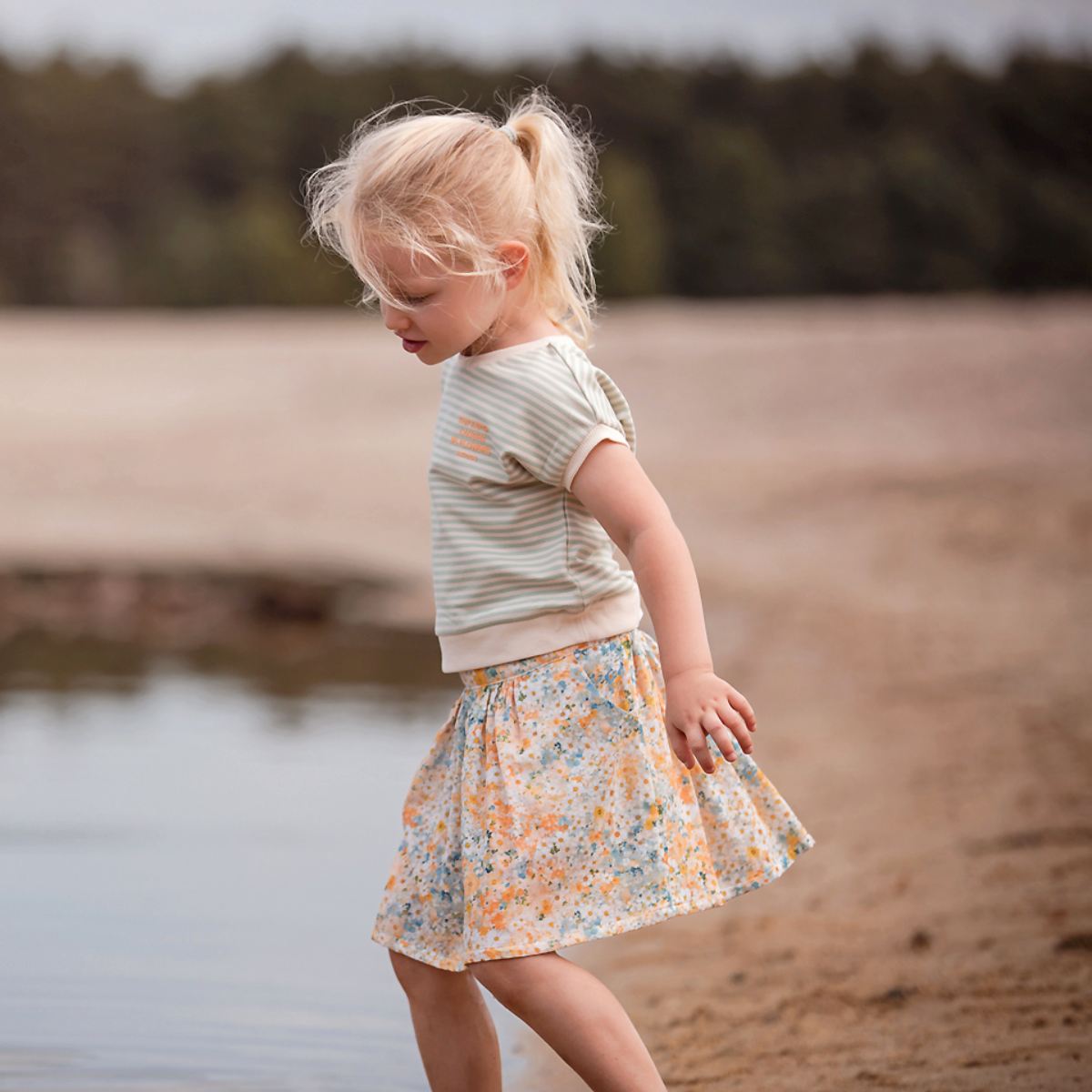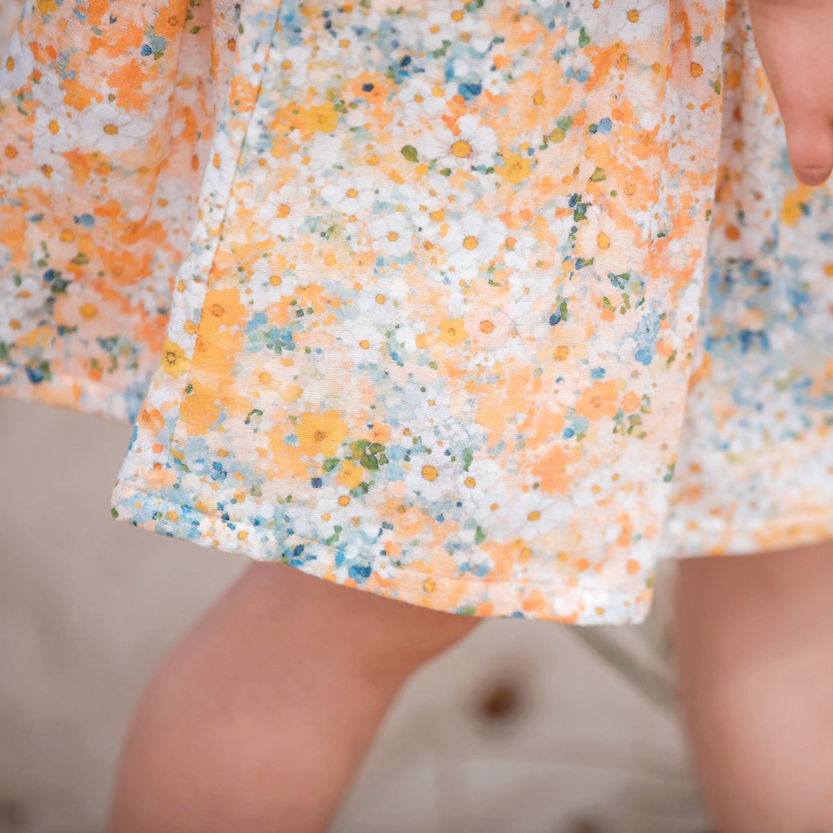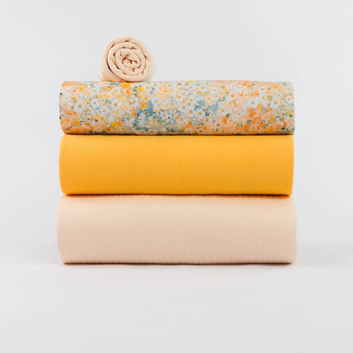 Eine verspielte Blumenwiese in harmonisch abgestimmten Farben: Lagunenblau, Bananengelb, frisches Grün und zarte Naturtöne verschmelzen zu einem lebendigen, aber dennoch ruhigen Gesamtbild. Die größten Blüten haben einen Durchmesser von ca. 2cm – fein genug für detailreiche Projekte, präsent genug für echte Hingucker. Die Doppelgaze – auch Musselin oder Tetra genannt – ist herrlich weich, leicht gekreppt und besonders angenehm auf der Haut. Mit 110 g/m² eignet sie sich ideal für luftige Blusen, Kleider, Tuniken, Kinderkleidung, Halstücher, Babydecken oder leichte Sommerhosen.